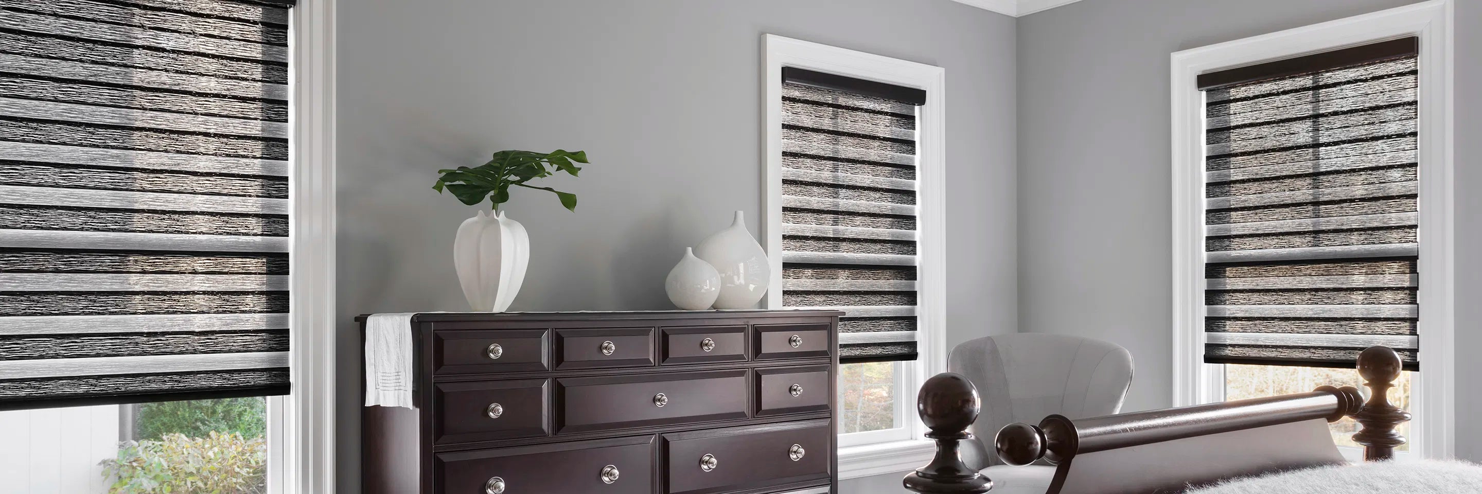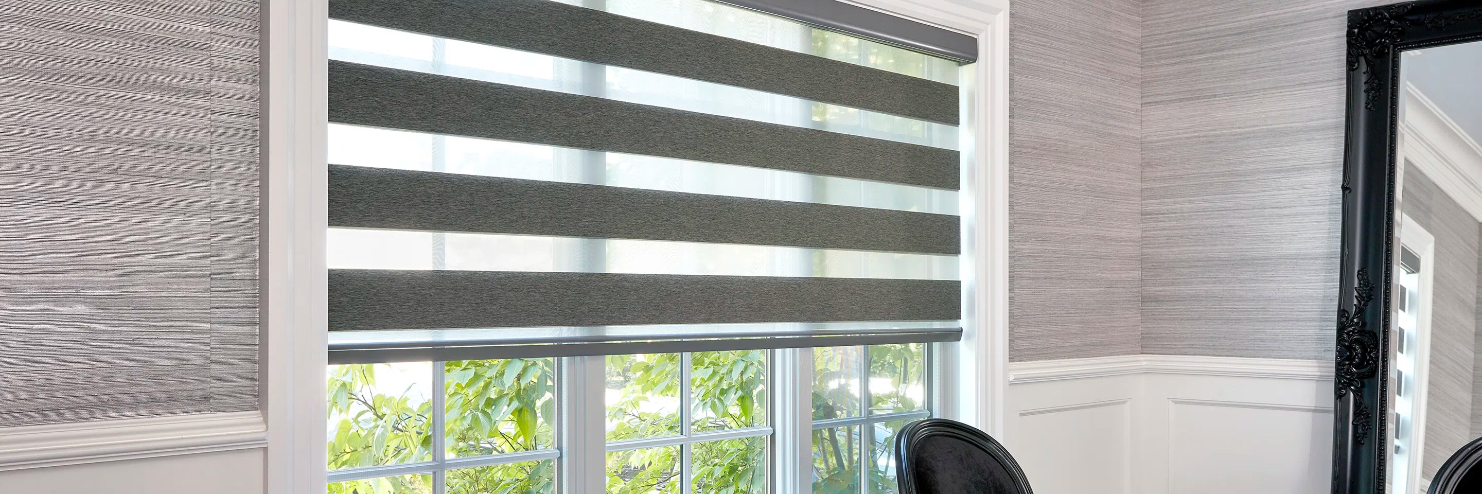 The Zebra shades also offer a minimalistic alternative to traditional blinds and curtains, providing a streamlined look that doesn’t overwhelm a room’s design. The floating appearance of the fabric bands creates a visually appealing contrast and adds depth to your windows without unnecessary bulk.